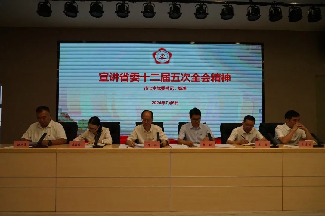 会议第一项议程,党委书记杨鸿传达学习习近平总书记给南充市嘉陵区之江小学学生的回信精神和习近平总书记对学校思政课建设作出重要指示精神,宣讲省委十二届五次全会精神。他要求全校教职工要以习近平新时代中国特色社会主义思想为指导,大力弘扬教育家精神,始终坚持为党育人、为国育才,坚决把思想和行动统一到省委十二届五次全会决策部署上来,办好人民满意的教育,为我市高质量发展建设共同富裕试验区贡献七中力量。